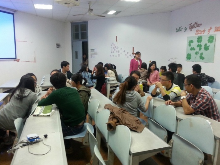 北校区水上教学楼302举行。前来参加此次英语角的同学有经管中心全体同学和北校区喜欢英语的同学。