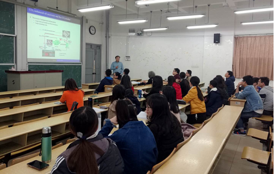 会上高老师先讲述其研究动力和研究背景,表明采用二氧化碳强化采油技术的石油公司将二氧化碳作为增加石油产量的投入,这与其他行业的长期合约中的典型价格调整条款大不相同。然后其设定一些假设,建立单合同模型和双合同模型来计算比较水驱动模式石油年产量和二氧化碳驱动模式石油年产量两种情况下的二氧化碳销售合同价格。通过程式化的模型表明,二氧化碳市场自身的特点使得二氧化碳卖方总是设定限定价格而不是固定价格。然而,基于活性二氧化碳强化采油项目的数值模拟表明,实际二氧化碳合同中观察到的固定系数明显低于我们的理论。模拟还表明,最优的钉住系数对中值石油价格和二氧化碳的利用效率很敏感,但对石油价格分布的波动性不敏感。低收缩的二氧化碳价格可能反映了其利用效率的事前不确定性。高老师有条不紊的讲解其研究内容,耐心详细地解答老师和同学们提出的疑惑,在座的同学们一边认真听着讲解一边做笔记,气氛颇为活跃。