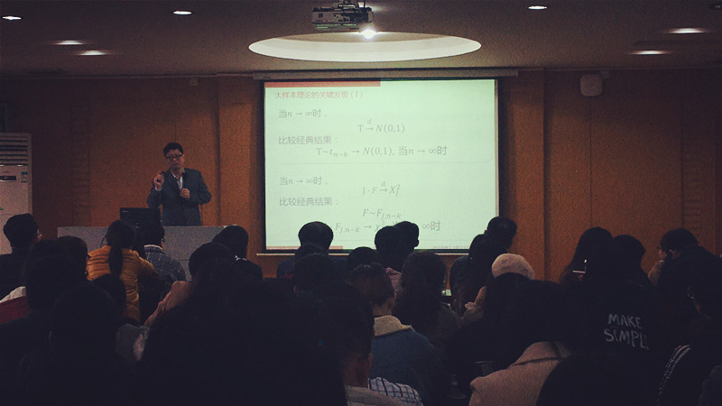 会上,洪永淼教授从相关假设出发,就现代计量经济学的发展及核心问题做了总体的梳理与把控。首先,洪教授肯定了计量经济学的发展与作用,并从经典计量经济学视角出发,详细介绍了经典线性回归模型的假设。但由于经济金融数据自身的特点,经典线性回归模型的部分假设难以满足,进而引申到现代计量经济学理论。洪教授指出,对于T-检验、F-检验和平稳时间序列数据,只要存在条件同方差假定,即使随机扰动项不服从正态分布,经典OLS理论在大样本情况下也依旧适用;小样本则可以通过Bootstrap等方法进行渐进拟合。其次,洪教授以条件异方差、自相关、非线性时间系列模型、内生性及模型设定等问题为导向,详细介绍了现代计量经济学理论。洪教授表示,现代计量经济学最伟大的贡献之一就是将条件同方差和自相关假定放松,可以综合运用GLS理论、构建正确方差估计量的稳健性T-检验和Wald检验、估计长期方差-协方差矩阵等方法得以解决;通过对非线性时间序列模型的均值建模,引出QMLE估计和GMM的估计方法,特别指出,当辅助假设错误时,QMLE估计可能出现的系列情况;对于内生性问题,则可以通过2SLS等方法加以修正。最后,洪教授就计量经济学学习时的注意事项给在座的同学们提出建议:坚持问题向导;经济学建模与经济理论的结合;正确的经济学模型设定是经济解释的有效性前提;注重识别变量间的因果关系;全面、系统、深入了解计量经济学理论与方法体系;密切跟踪概率论、统计学等相关学科的前沿研究与发展。会上,洪永淼教授耐心详细地解答老师和同学们提出的疑惑,同学们一边做笔记一边学习,气氛非常活跃。但由于时间限制,仍有很多理论未来及探讨,对此,洪教授和在会的师生都表示了对下次交流的期待。