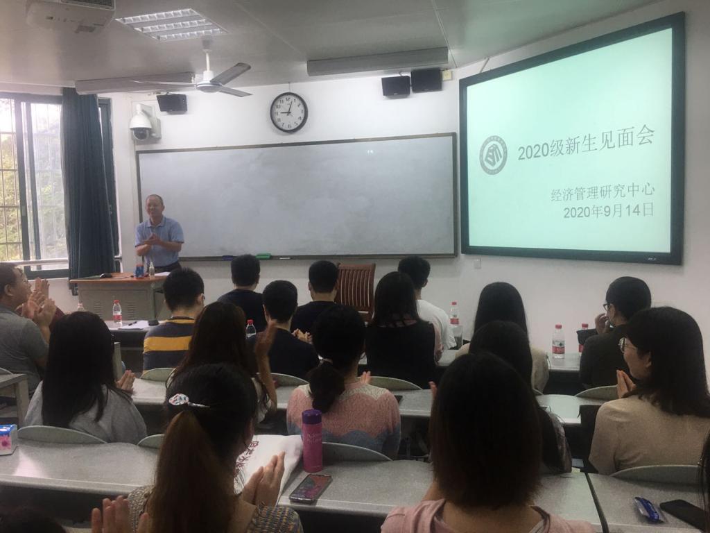 在水教211教室举行了2020级研究生新生见面会。经管中心领导、全职教师、行政人员、新入学的硕士及博士研究生、在读学生代表参加了此次新生见面会。